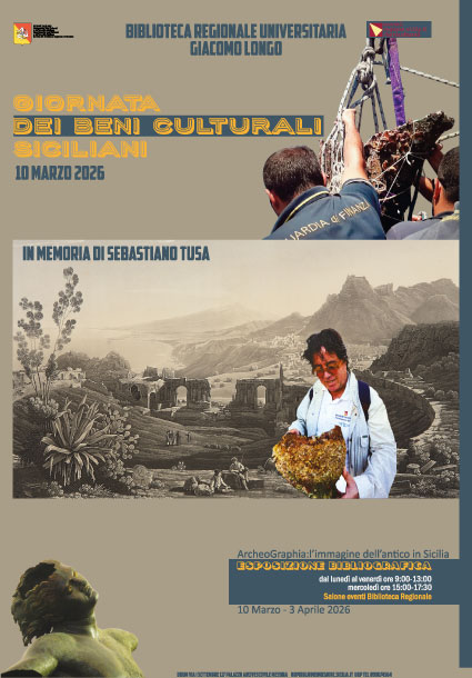 Spazio espositivo fruibile dal 10 marzo al 3 aprile 2026, dal lunedì al venerdì, dalle 9 alle 13; mercoledì anche di pomeriggio, dalle 15 alle 17:30 con ingresso libero via I° settembre 117 - Palazzo Arcivescovile.In occasione della Giornata dei Beni Culturali Siciliani e in memoria dell’Assessore Sebastiano Tusa, alto professionista e uomo di valori eccelsi, è stata allestita nel Salone Eventi d’Istituto, al piano terra, un’esposizione iconografica e bibliografica di archeologia.