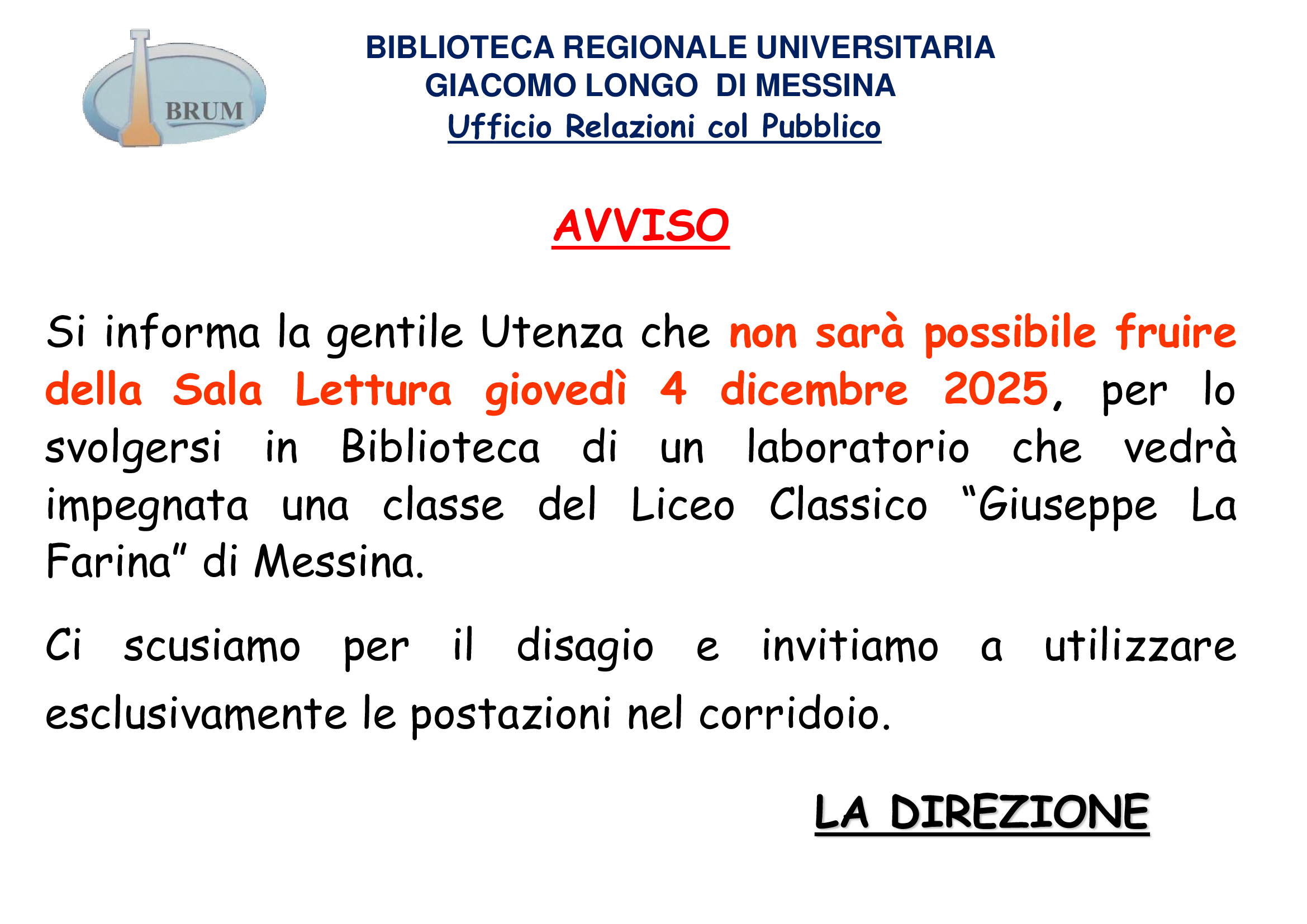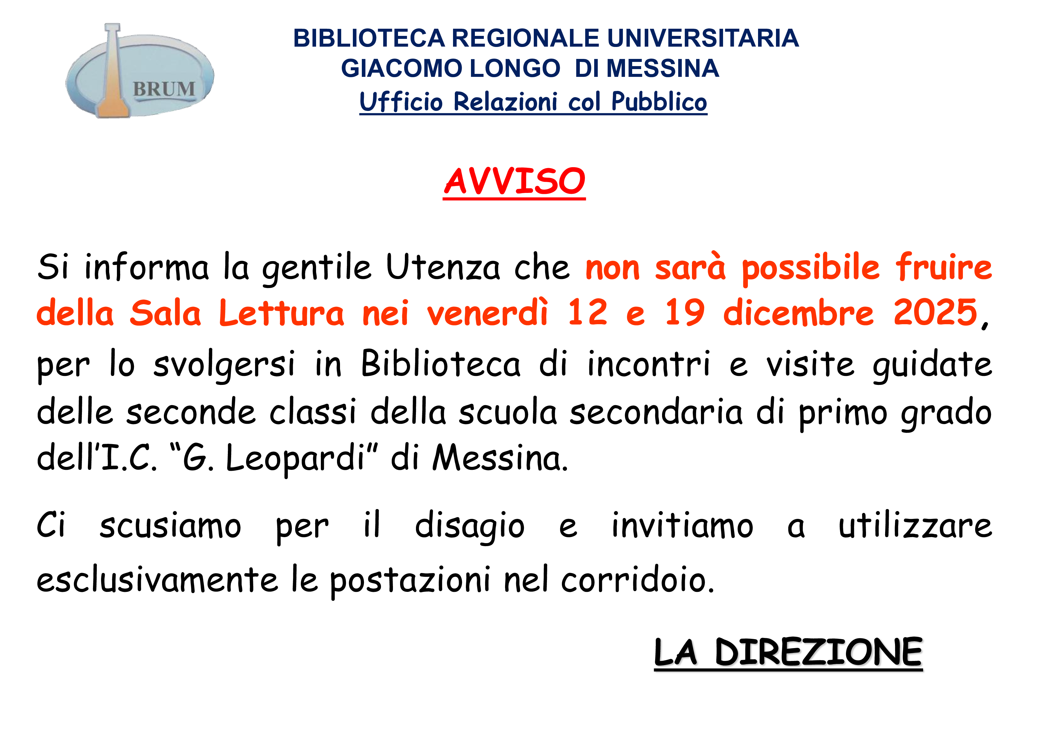 Biblioteca Sede Centrale: telefono: 090663332/3 URP Ufficio Relazioni con il Pubblico:
