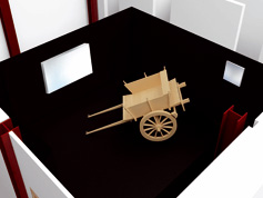 IV SEZIONE - "Il Simposio" In questa parte del nostro itinerario, il Simposio rappresenta la sosta al percorso Museologico, breve ma utile per leggere le didascalie e osservare alcune parti costruttive del carretto, elementi esposti singolarmente, laterali, portelli, casse d'asse, aste, ecc... |