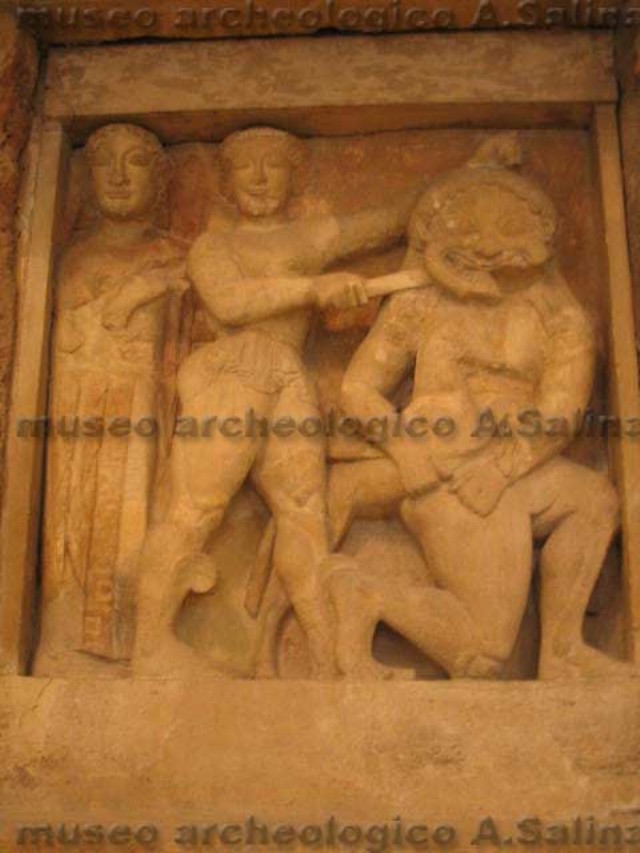 Metopa con Perseo che uccide la Medusa in presenza di Athena (Tempio C)