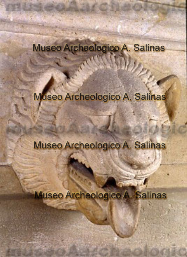 Particolare del gocciolatoio a testa leonina dal Tempio della Vittoria Himera
